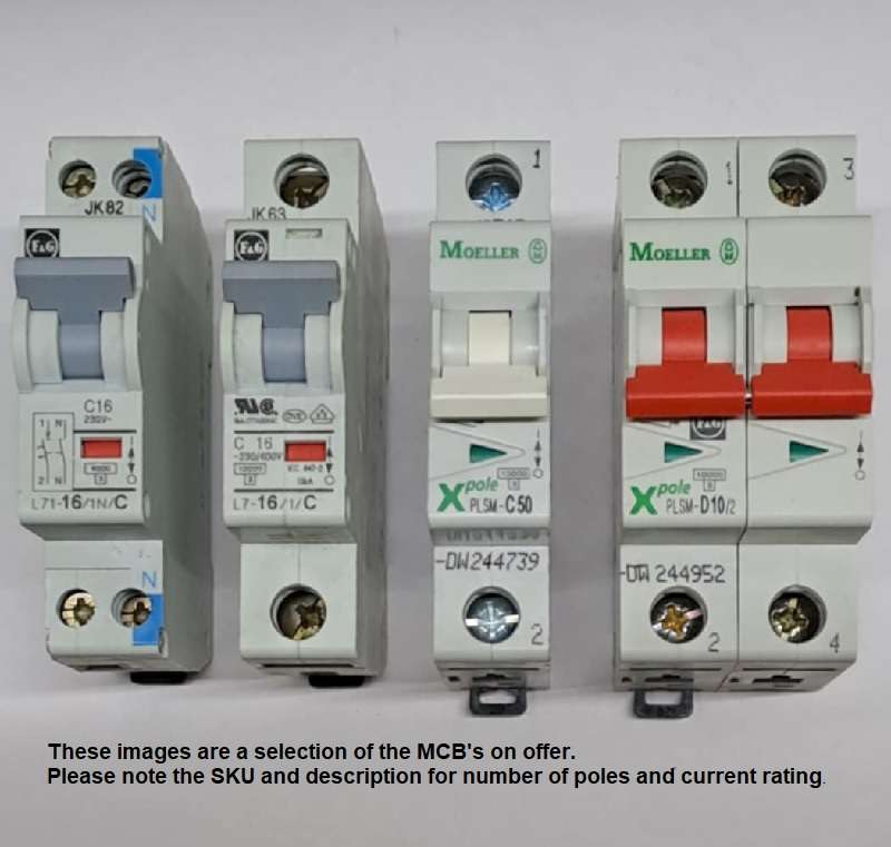 A range of F&G,Eaton Moeller MCB'S ,all are same size and connection format.